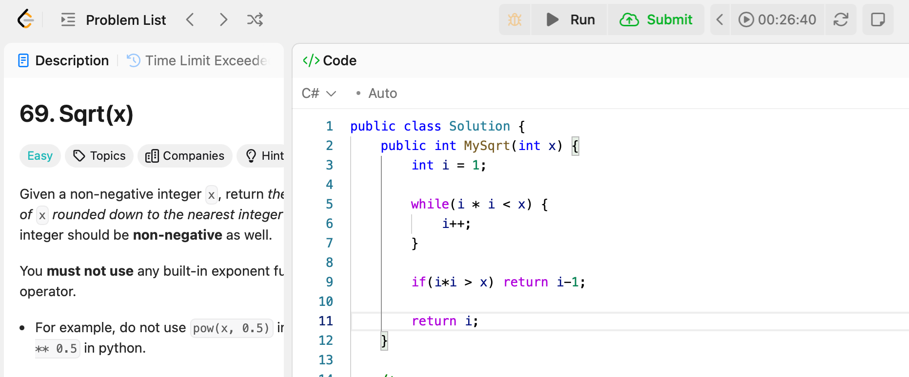- In case the number is a normal square like 16, we won't overstep by 1, so no need for line 9.