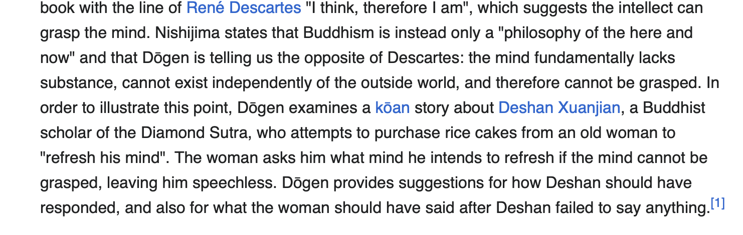 I am only including the Wikipedia section - the original can be found in Shobogenzo, Book 1, translated by Gudo Nishijima & Chodo Cross.