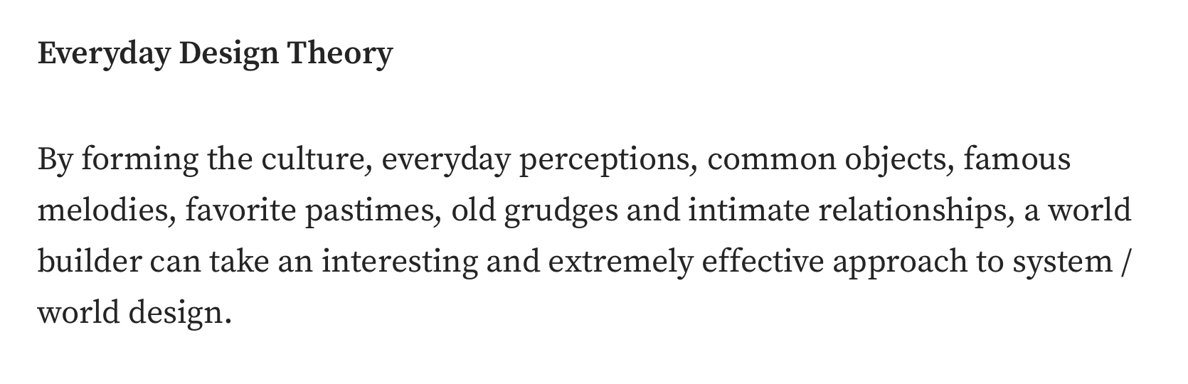 If I am right to see this common thread between approaches, then I think both students and writers will benefit from having a shared understanding of 'what' is world building, 'why' it matters, and 'what' is "good" world building.