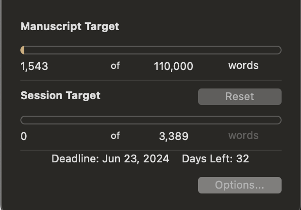 No progress on the manuscript. Did more research on science, and trying to accelerate world building.
